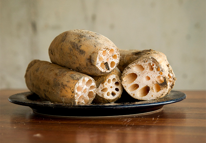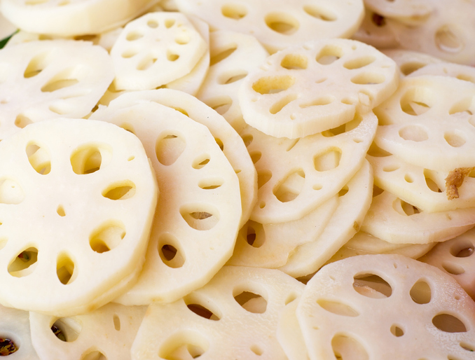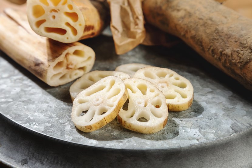 연꽃의 뿌리인 연근은 식감아 아삭하고 식이섬유가 두둑하여 저칼로리 메뉴에 사용하면 좋아요. 마와 같은 식으로 위벽을 지켜주는 단백질인 뮤신이 거량 포함되어 있고요.