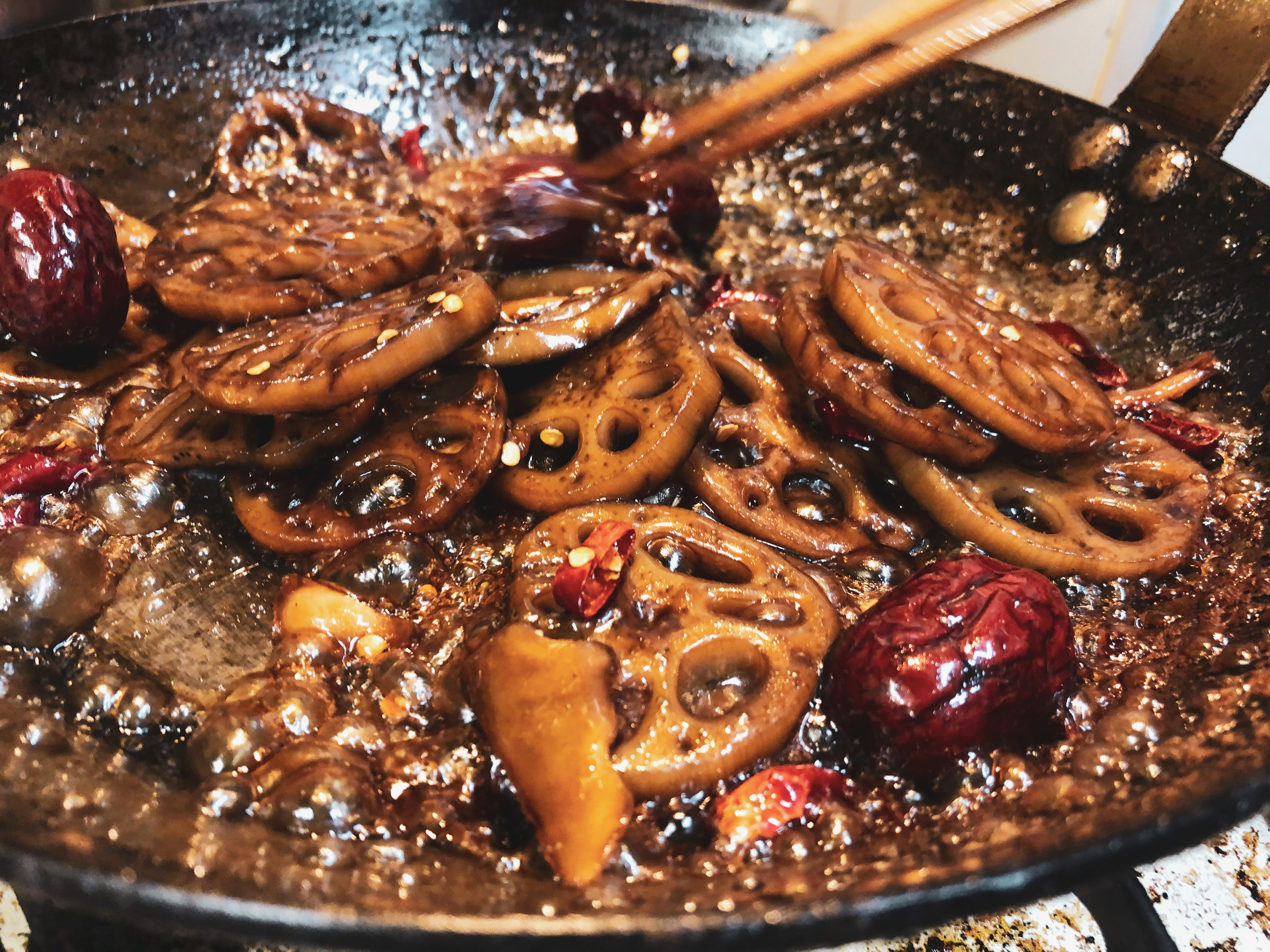 3. 20분 정도 끓여주니 연근에 간장물이 스며들어 칼라도 얼마정도 검으스름하게 변하고젓가락으로 찔러보지 않는다해도 연근이 익었다는걸 깨달을 수 있었습니다.